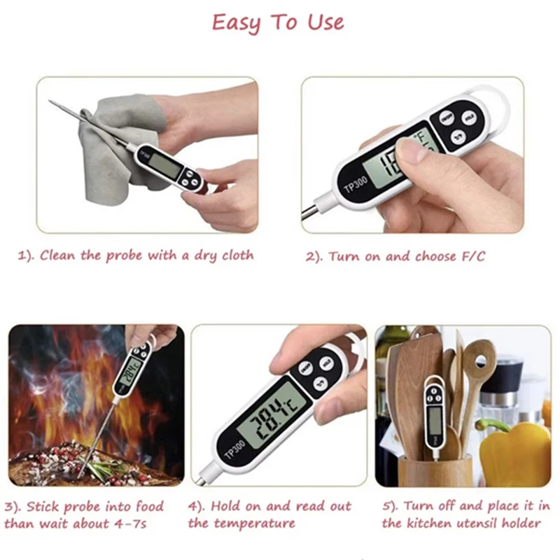 Probe Type Food Thermometer Kitchen Digital Thermometer For Meat Milk Cooking Food BBQ TP300 Electronic Temperature Gauge Tool